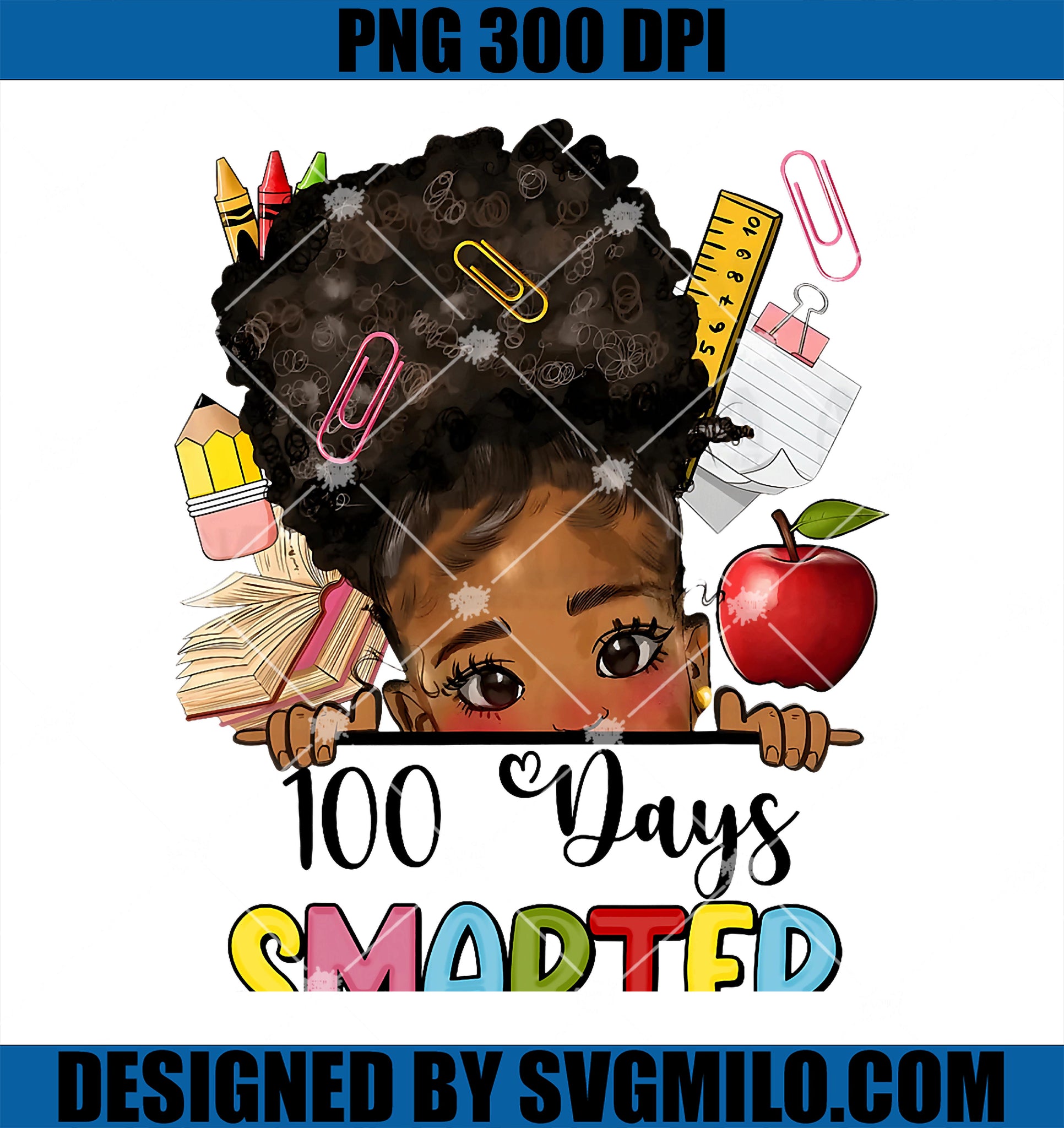 Product Tags# 100 Days Smarter PNG, Afro Girls Messy Bun 100th Day Of School PNG