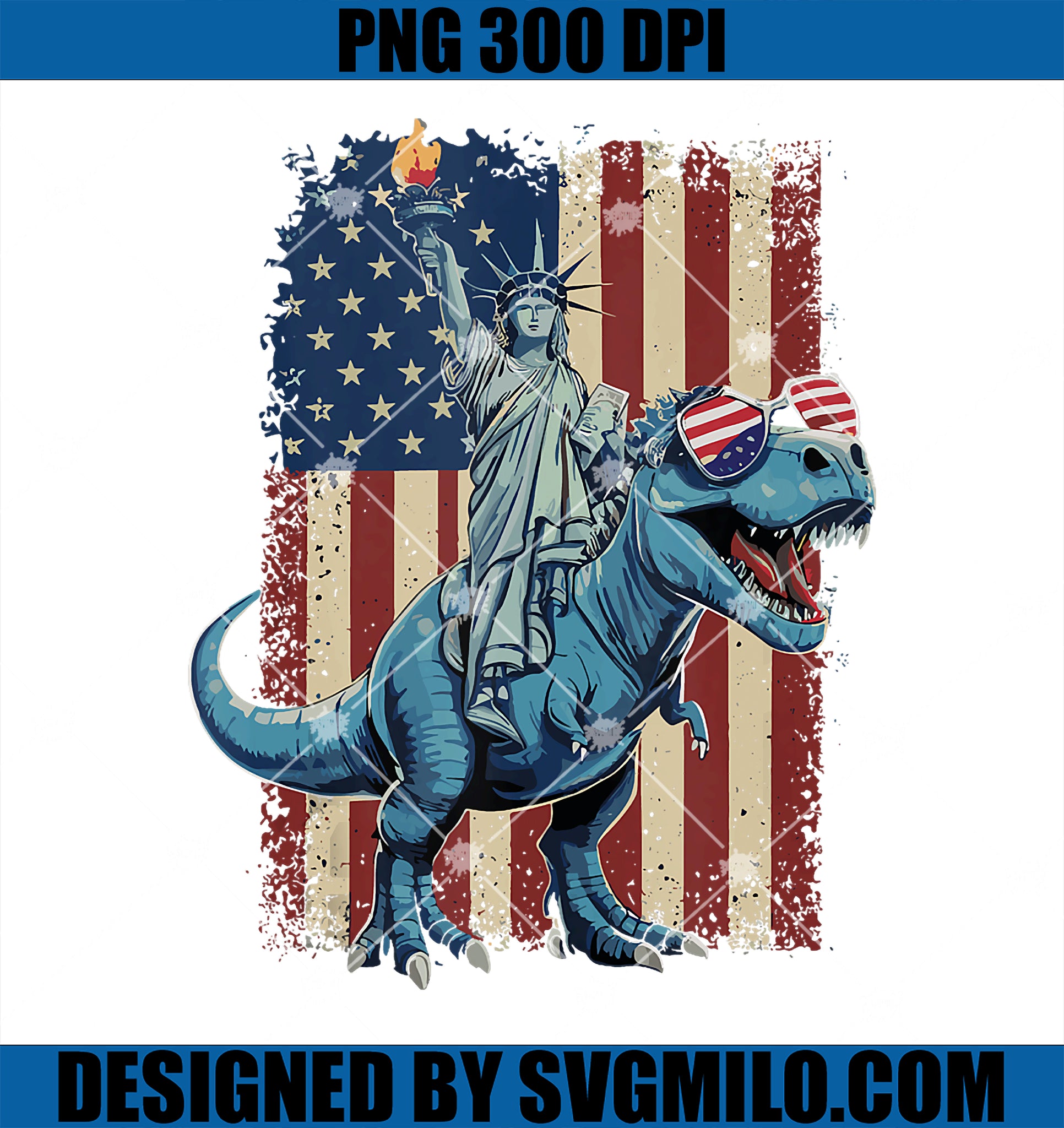 Dino Statue Of Liberty 4th Of July PNG, Funny Boys American Flag PNG