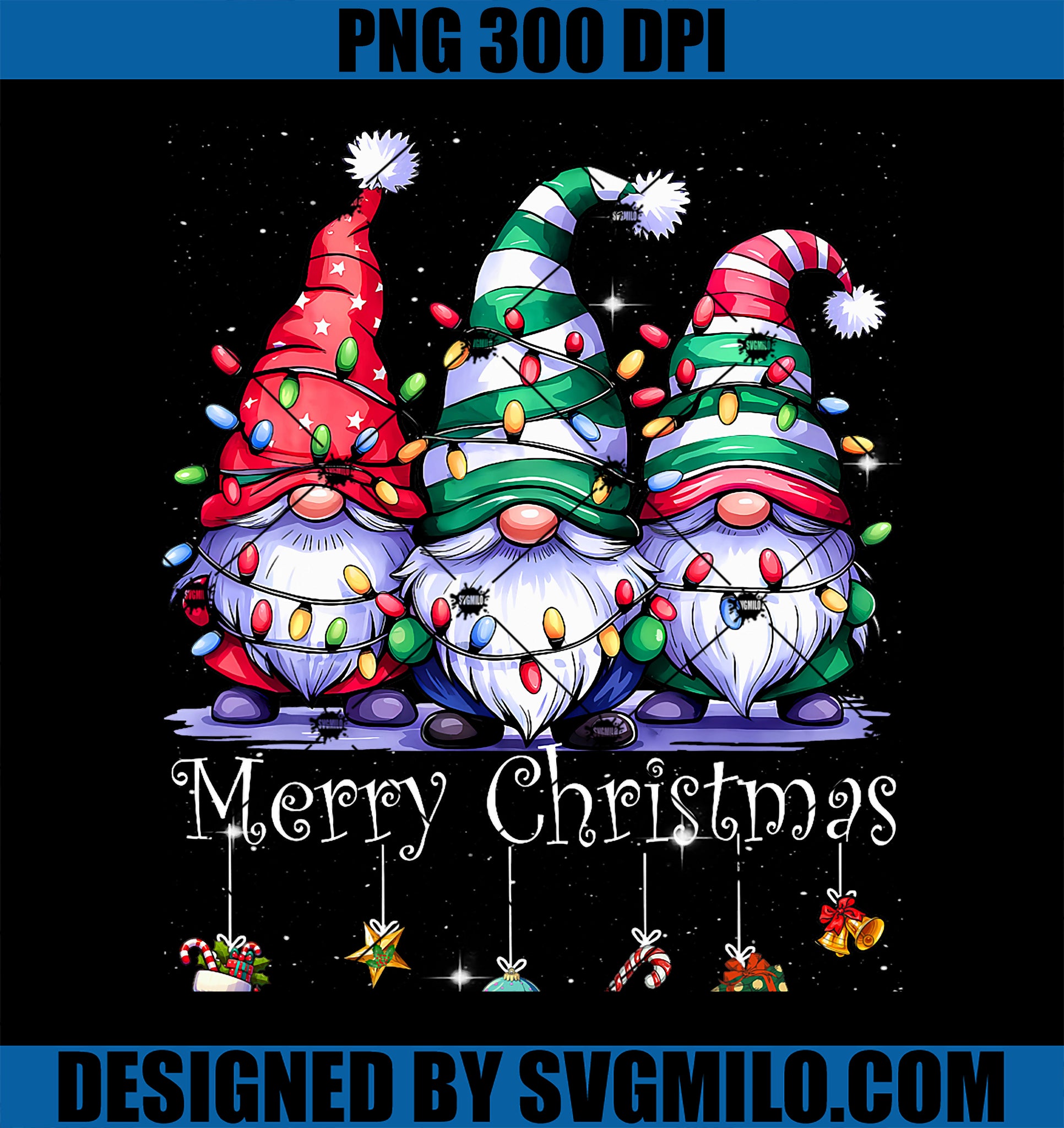 Cute Gnomes Merry Christmas Light Family PNG. Gnome Xmas Matching PNG