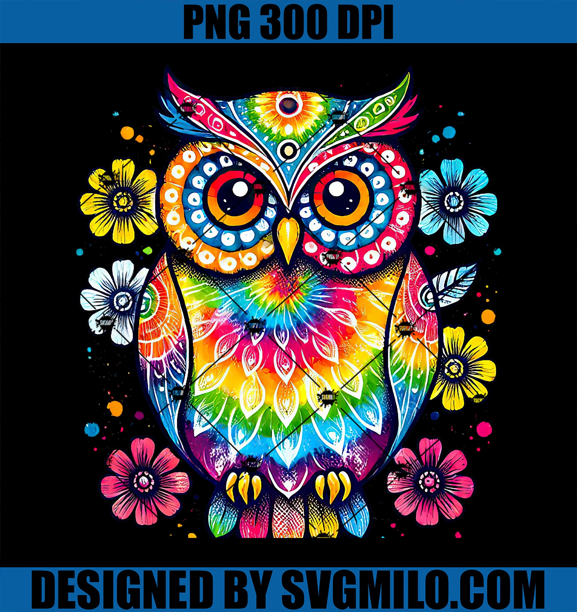 Product Tags# Owl Artwork Flower Colorful PNG, Tie Dye Owl Lover PNG