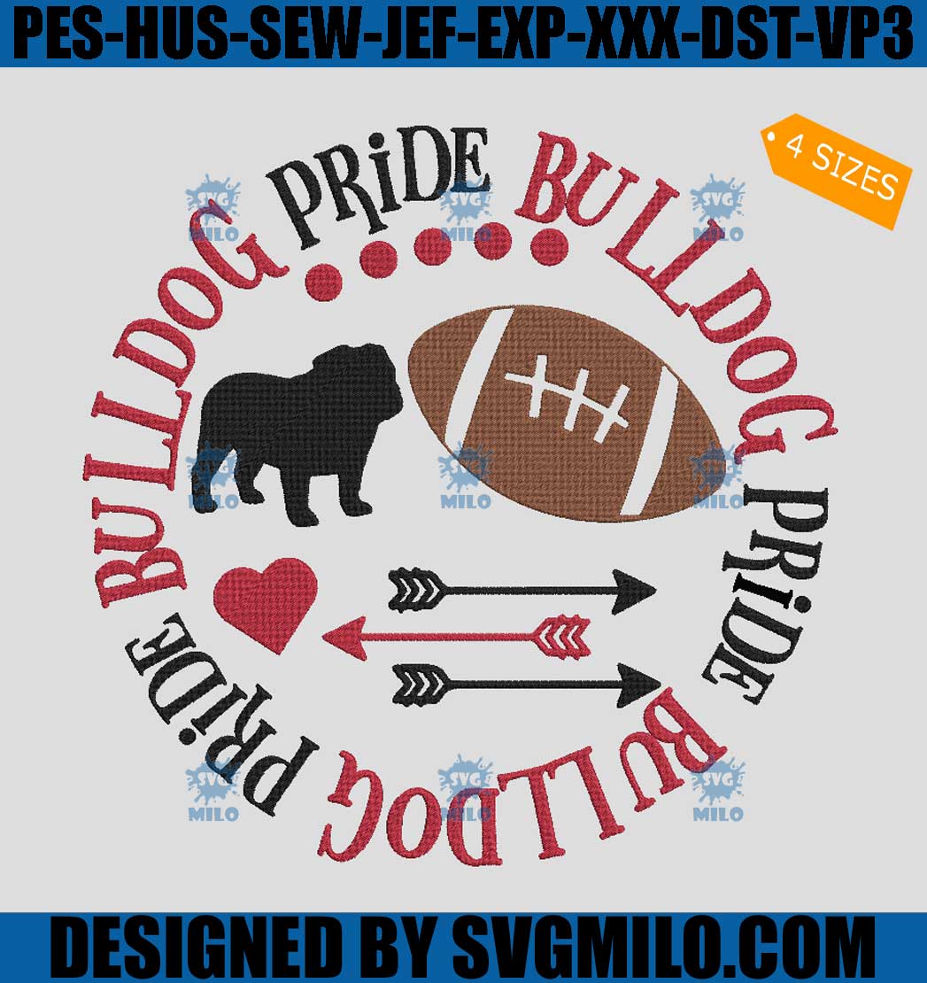 Bulldog Pride Football Embroidery Design, Dog Football Embroidery Design