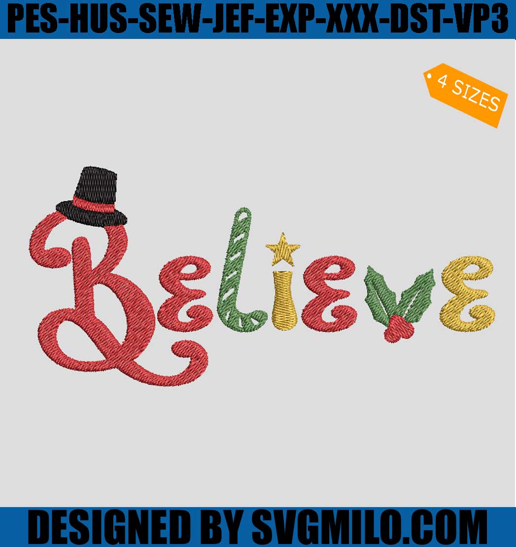 Christmas Believe Embroidery, Christmas Embroidery Machine File