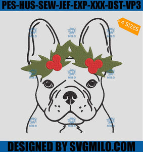 Christmas French Bulldog Embroidery Design, Christmas Frenchie Embroidery Design