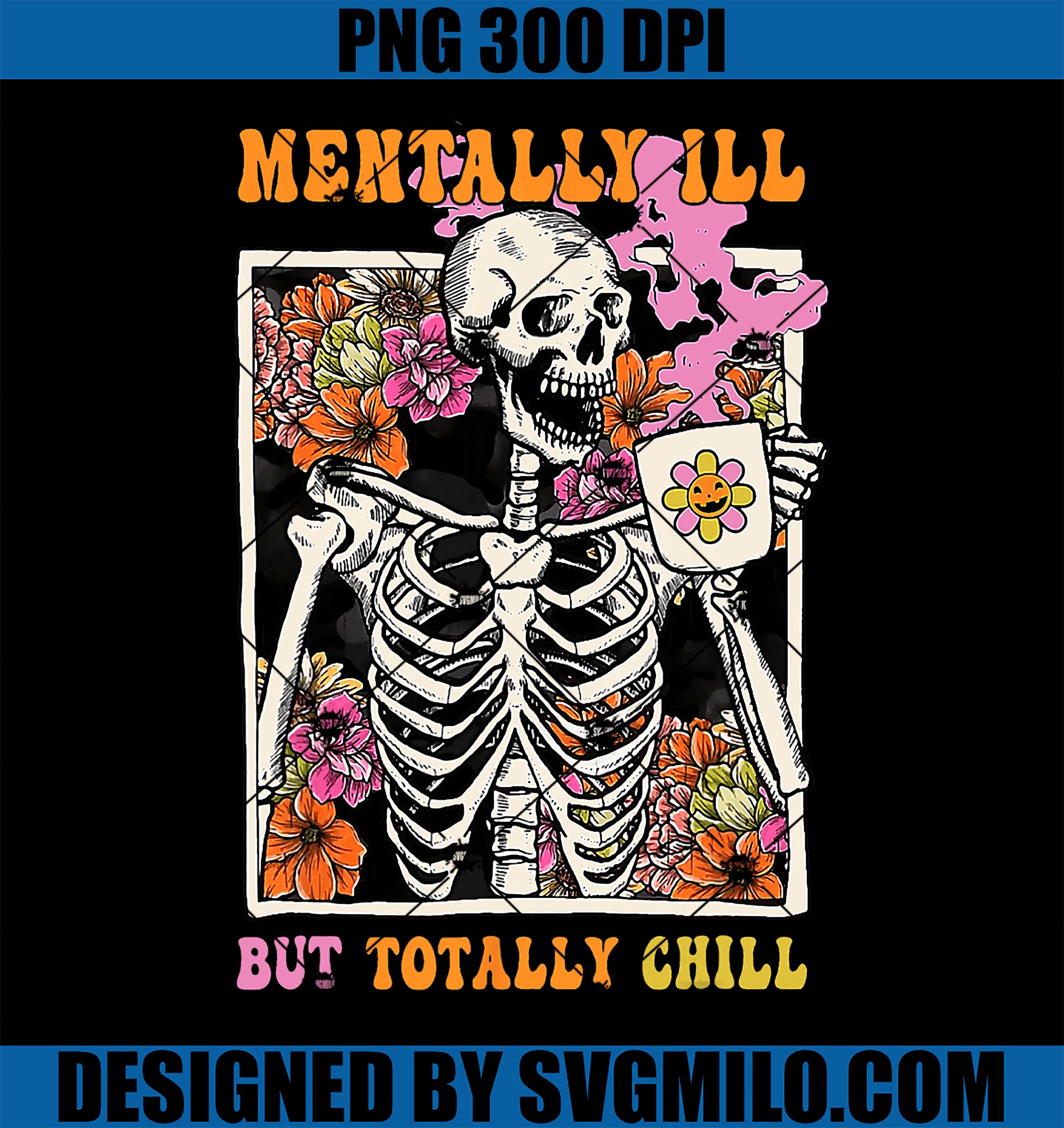 Product Tags# Retro Mentally Ill But Totally Chill PNG, Halloween Skeleton PNG, Skeleton Coffee PNG