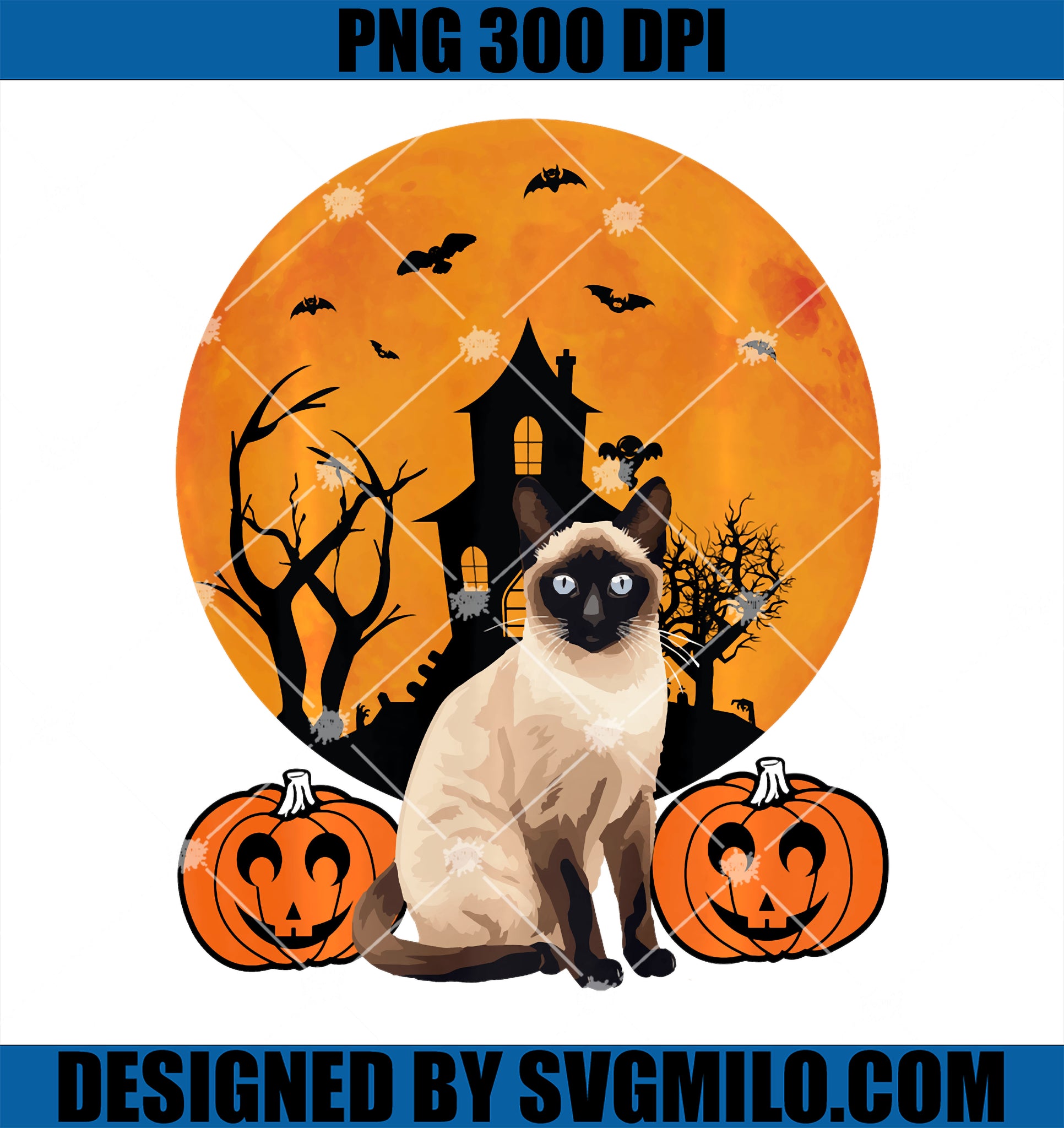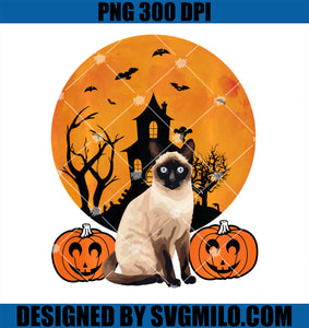 Product Tags# Siamese Cat Lazy Halloween PNG, Pumpkins Moonlight House PNG
